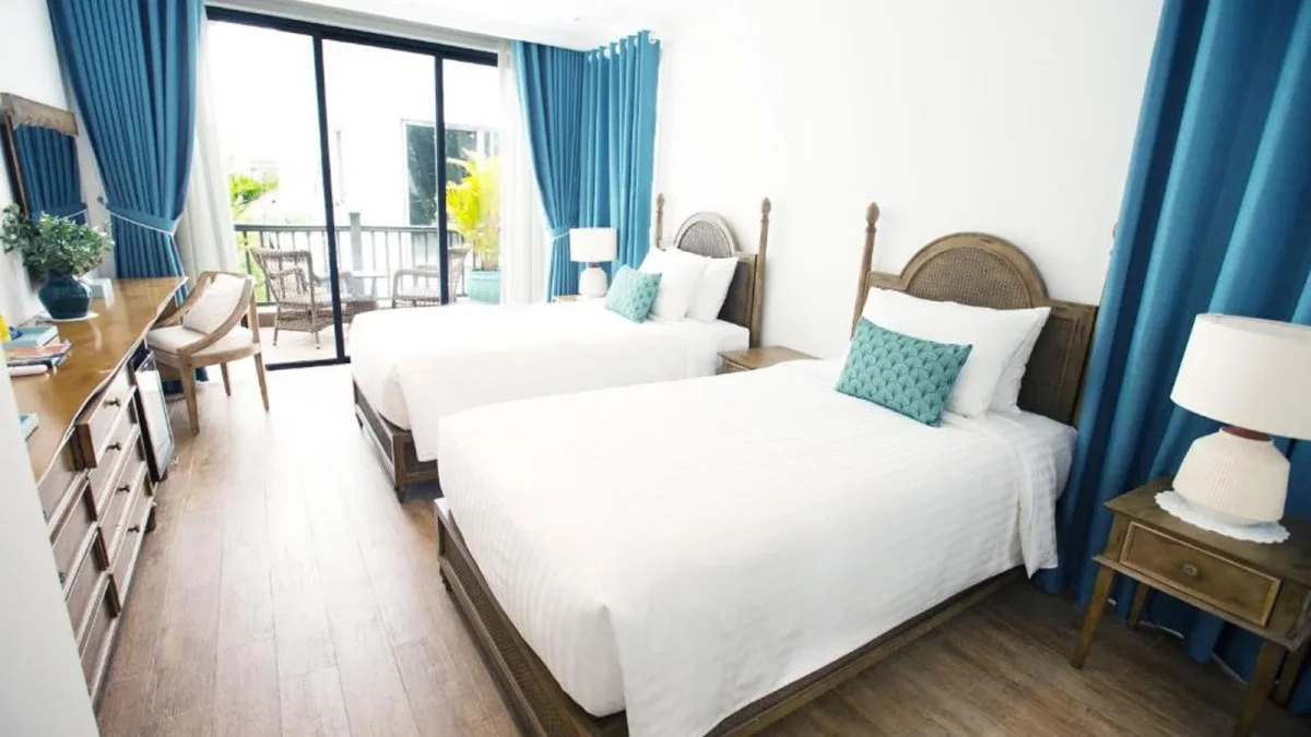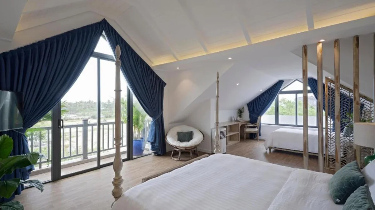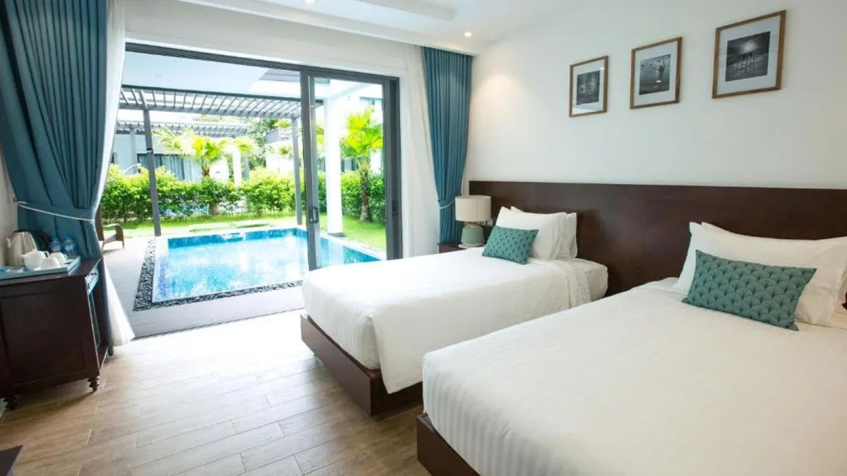 Resort cung cấp nhiều loại phòng và biệt thự, từ phòng đôi tiêu chuẩn đến các biệt thự 3-5 phòng ngủ, phù hợp cho cả gia đình và nhóm bạn. Các biệt thự đều có ban công hoặc sân hiên riêng với tầm nhìn ra biển hoặc vườn, mang đến không gian thoải mái, yên tĩnh.