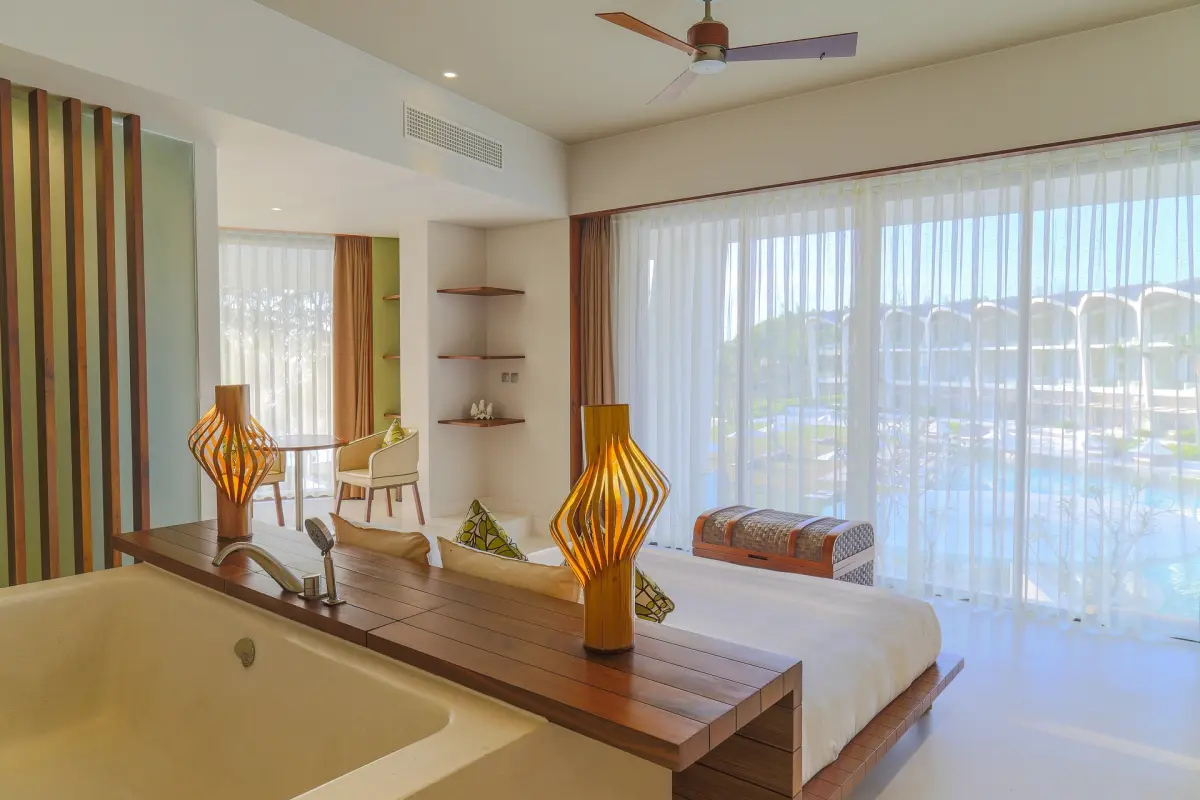 Khu nghỉ dưỡng này cung cấp nhiều loại phòng và biệt thự, với các lựa chọn từ phòng tiêu chuẩn đến biệt thự có hồ bơi riêng. Tất cả các phòng đều được trang bị máy lạnh, ban công riêng, TV màn hình phẳng và minibar. Một số biệt thự còn đi kèm với dịch vụ spa, mang đến trải nghiệm thư giãn tối đa.