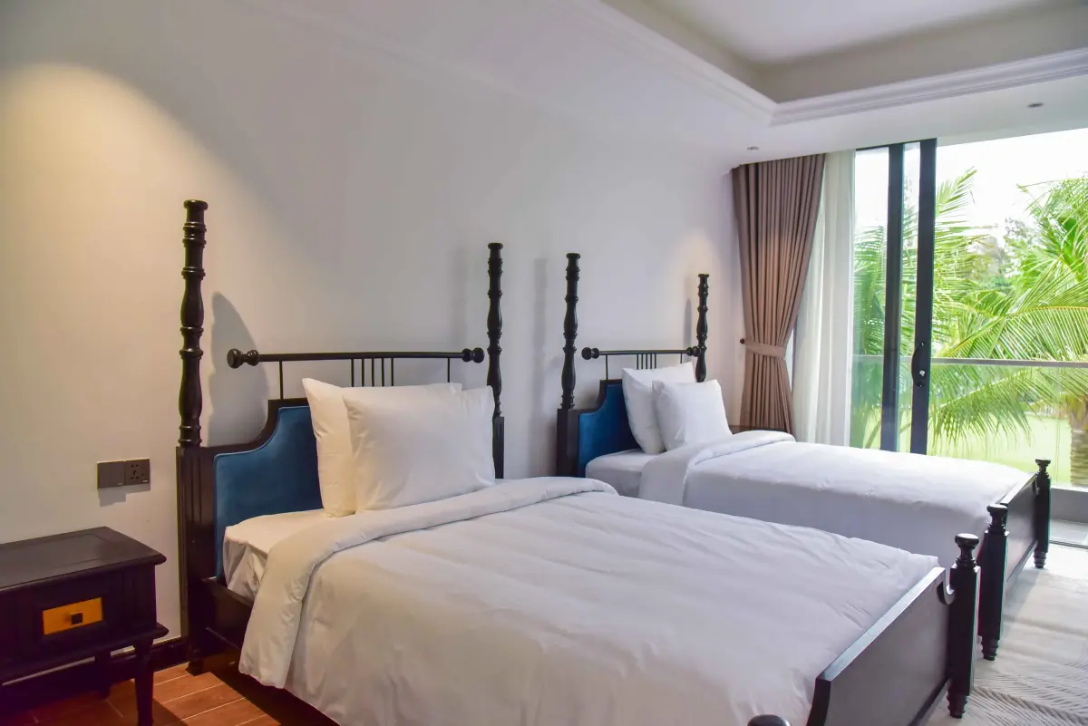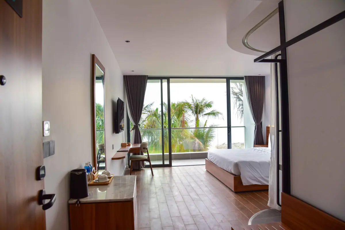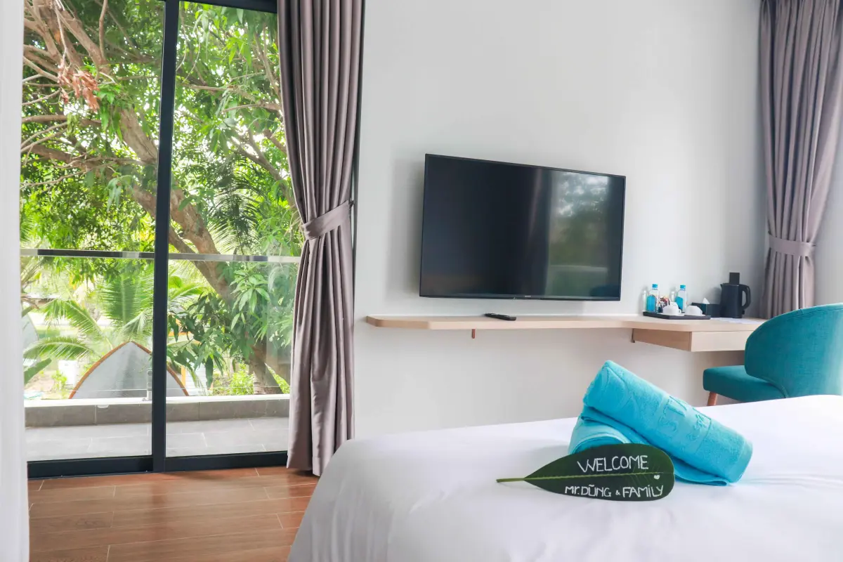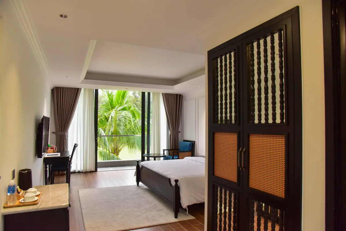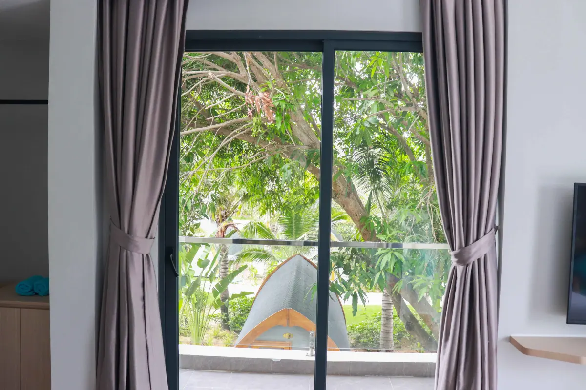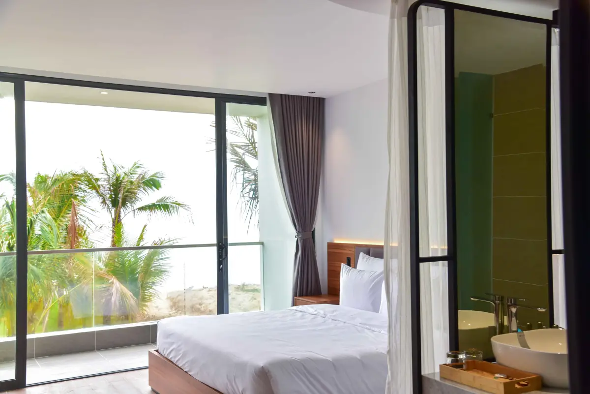 Khu resort được bao quanh bởi cây xanh và những lối đi rợp bóng dừa. Phòng nghỉ chủ yếu là bungalow hoặc villa riêng biệt, tường trắng mái ngói nâu, thiết kế kiểu hiện đại pha chút mộc mạc. Hầu hết phòng đều có ban công riêng hoặc khoảng sân nhỏ nhìn ra vườn hoặc biển, buổi sáng chỉ cần mở cửa là nghe tiếng sóng.