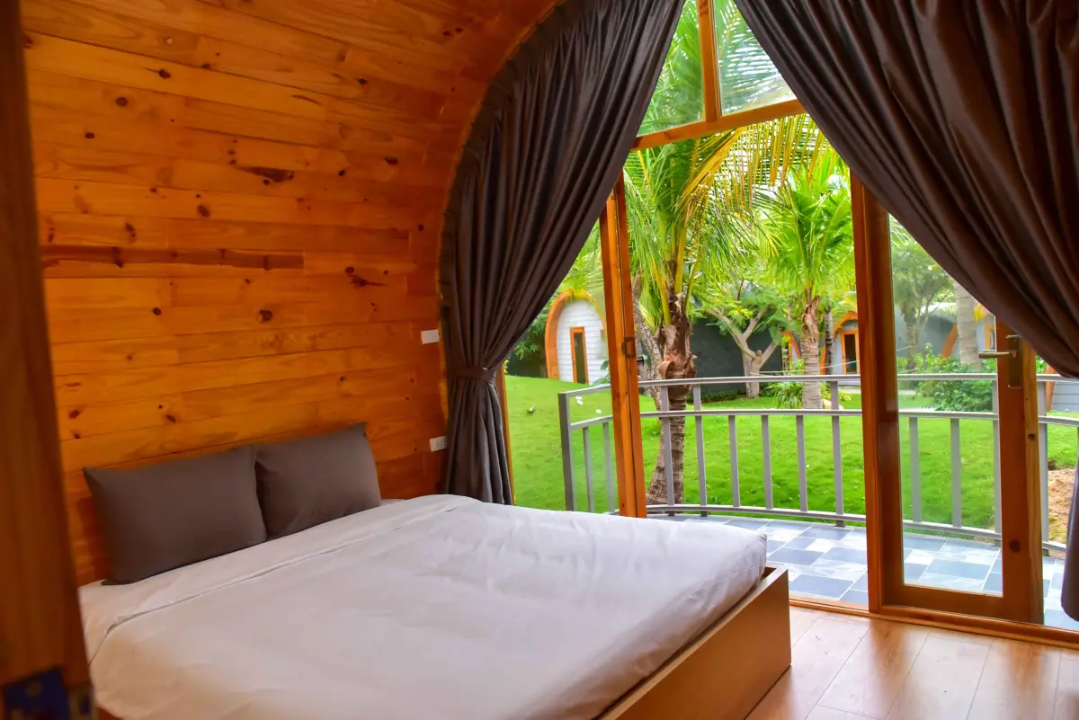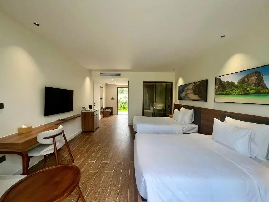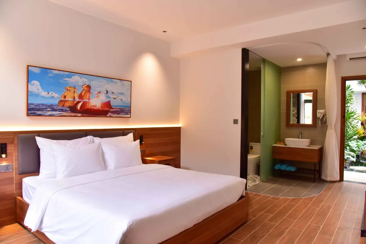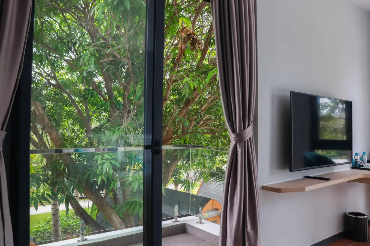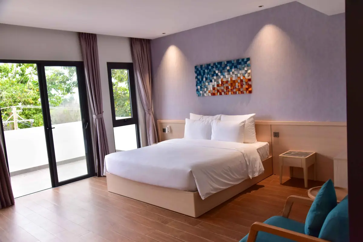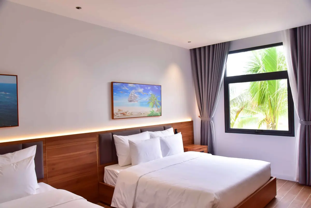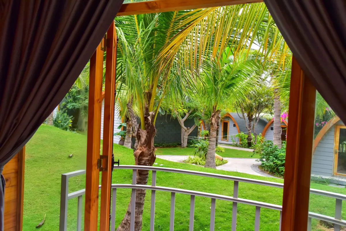 Khu resort được bao quanh bởi cây xanh và những lối đi rợp bóng dừa. Phòng nghỉ chủ yếu là bungalow hoặc villa riêng biệt, tường trắng mái ngói nâu, thiết kế kiểu hiện đại pha chút mộc mạc. Hầu hết phòng đều có ban công riêng hoặc khoảng sân nhỏ nhìn ra vườn hoặc biển, buổi sáng chỉ cần mở cửa là nghe tiếng sóng.