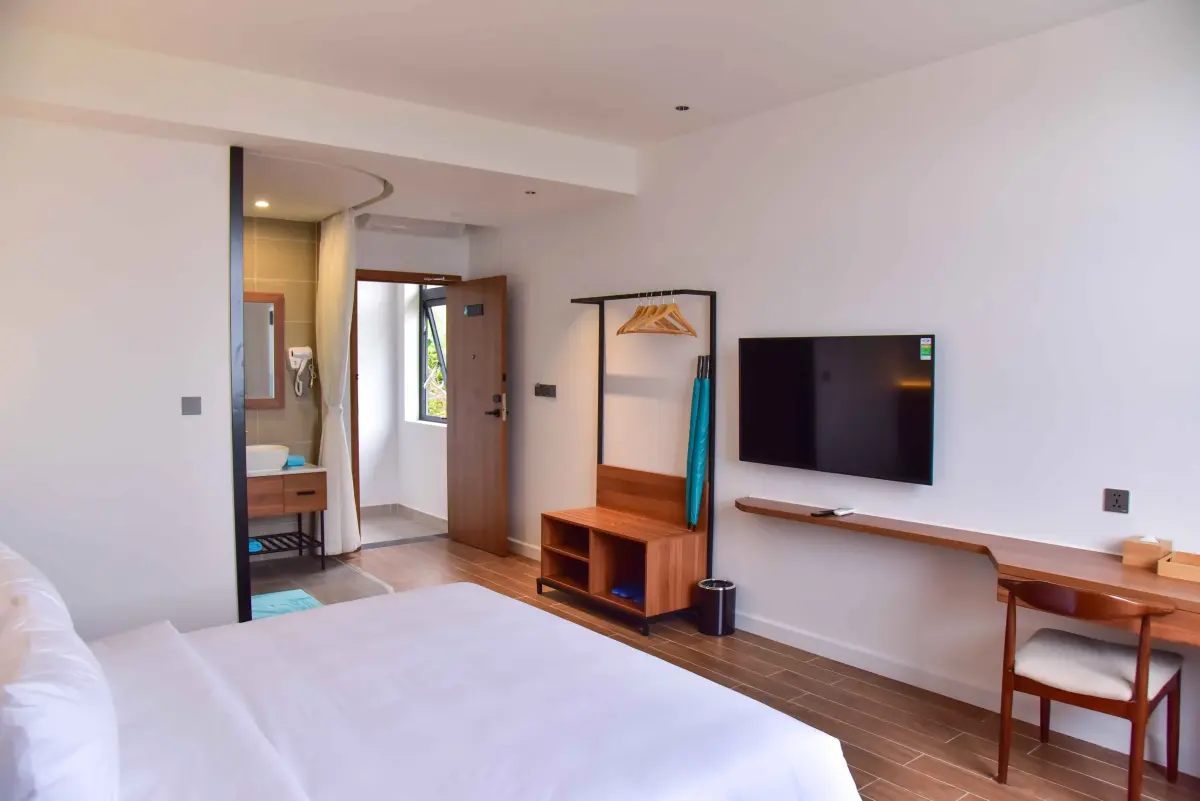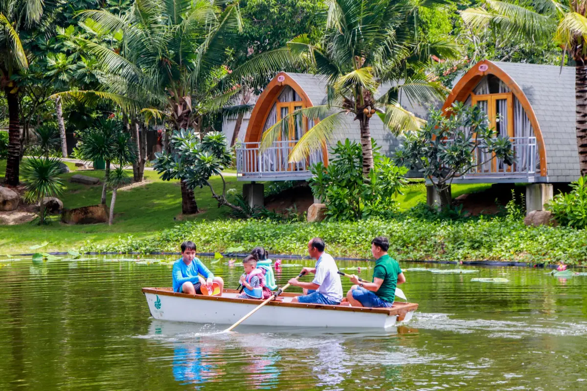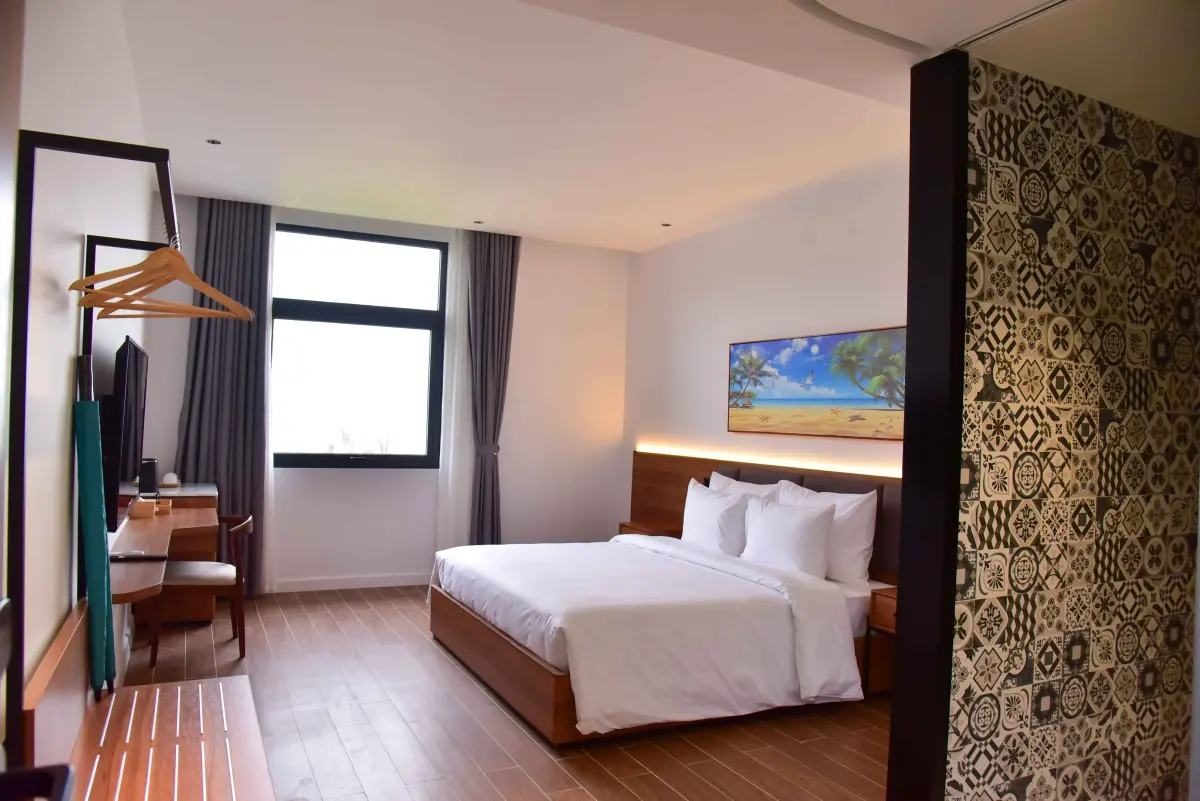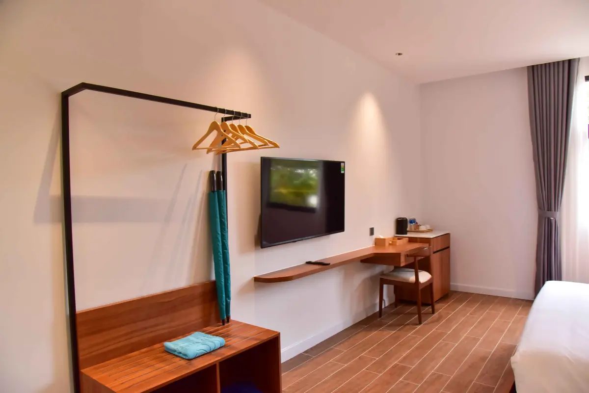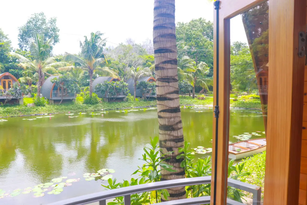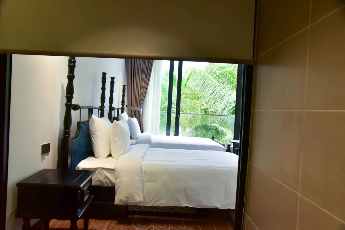 Khu resort được bao quanh bởi cây xanh và những lối đi rợp bóng dừa. Phòng nghỉ chủ yếu là bungalow hoặc villa riêng biệt, tường trắng mái ngói nâu, thiết kế kiểu hiện đại pha chút mộc mạc. Hầu hết phòng đều có ban công riêng hoặc khoảng sân nhỏ nhìn ra vườn hoặc biển, buổi sáng chỉ cần mở cửa là nghe tiếng sóng.