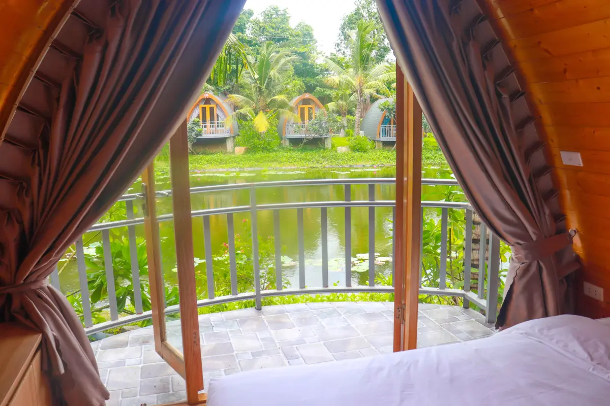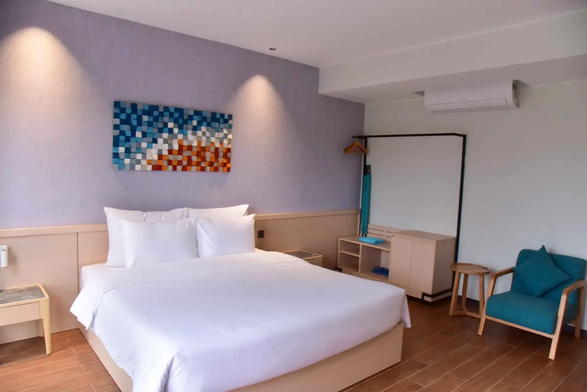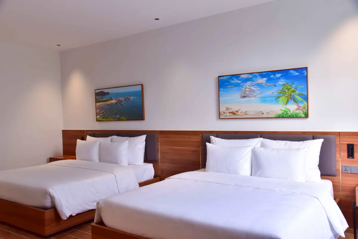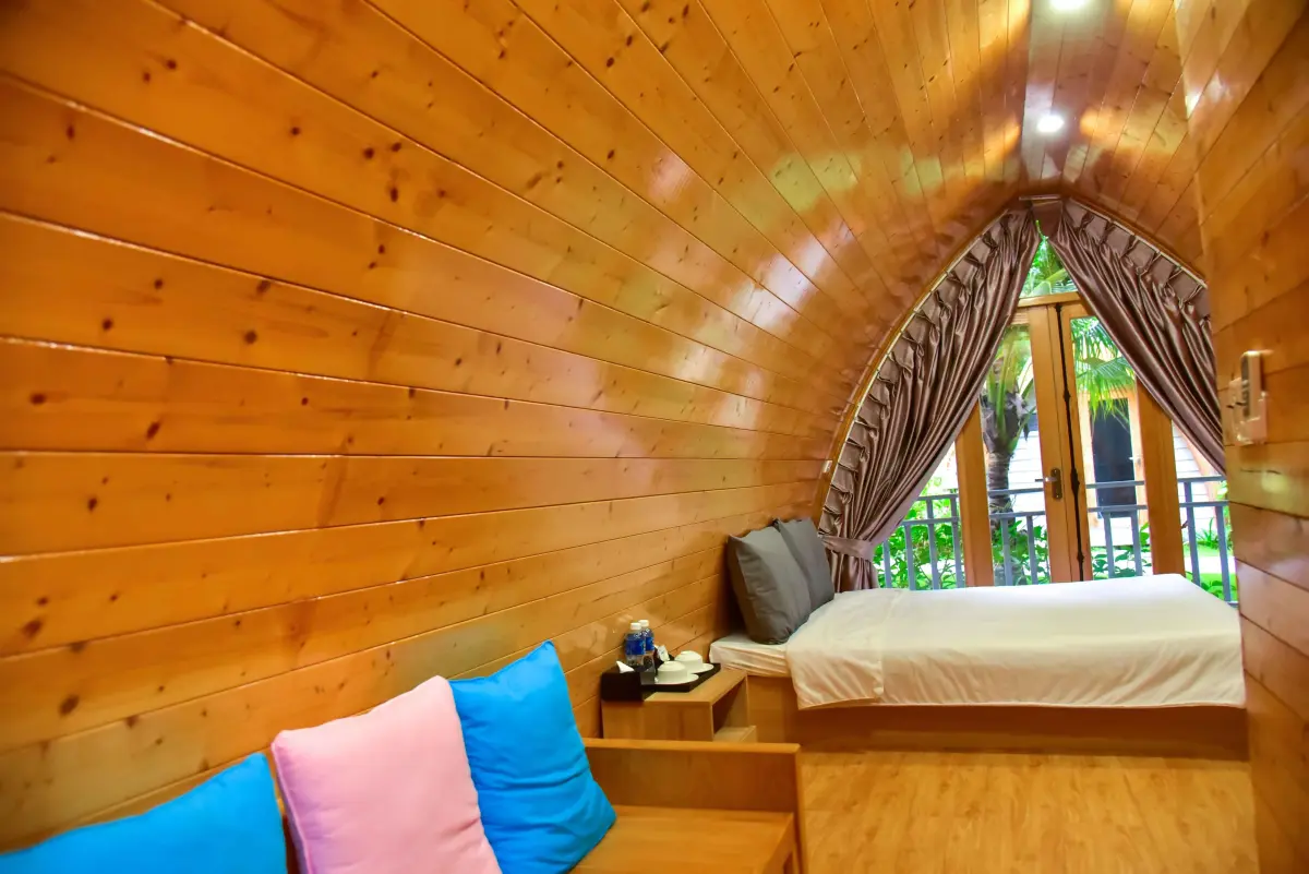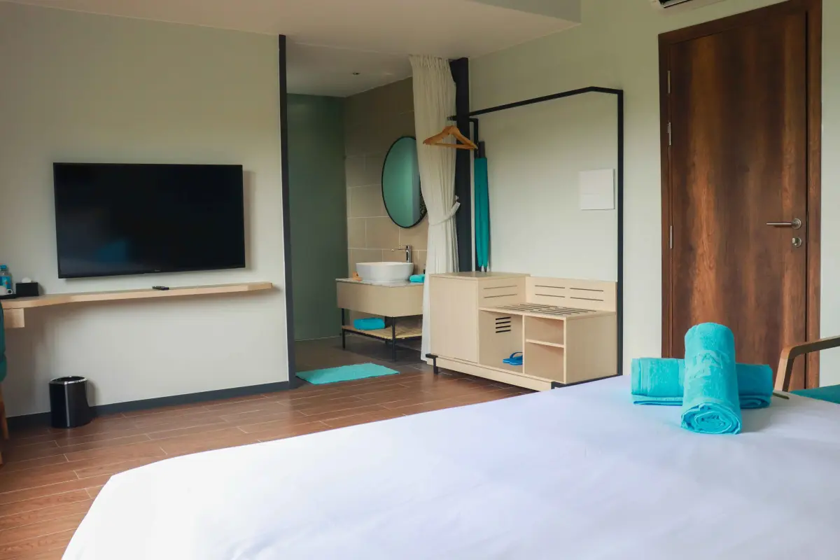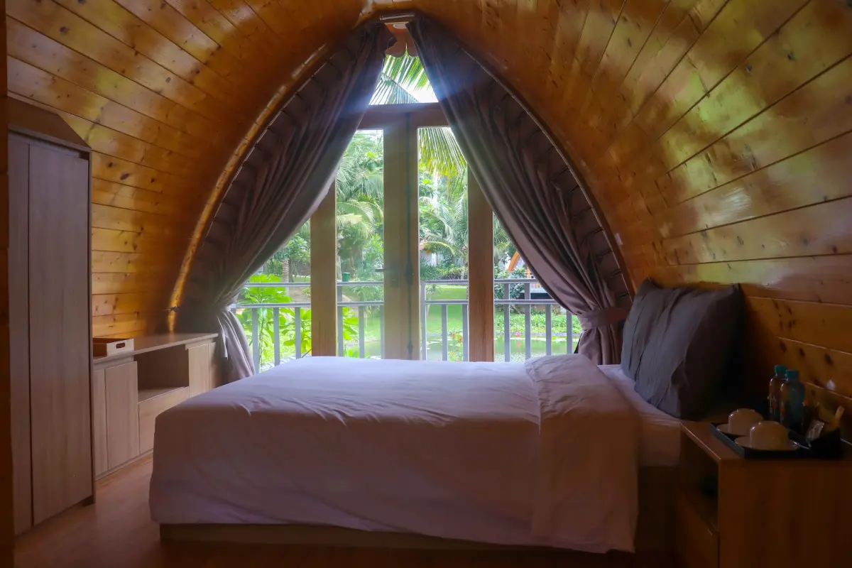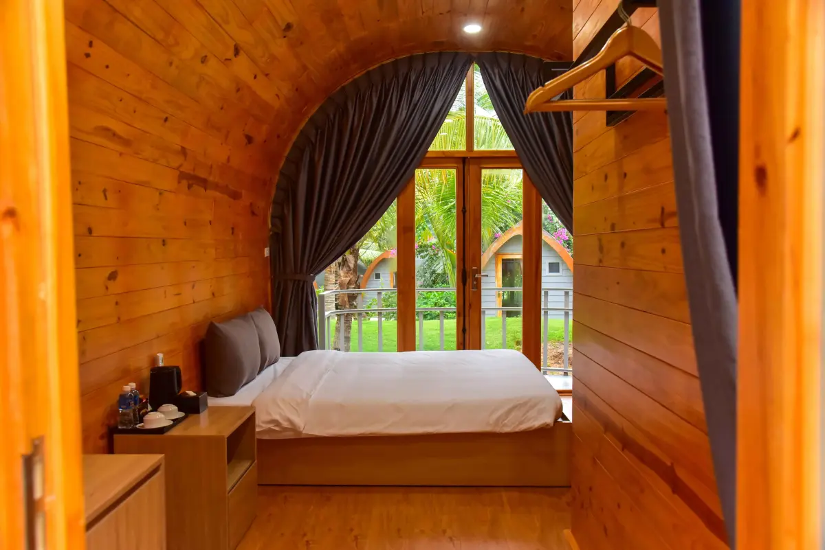Khu resort được bao quanh bởi cây xanh và những lối đi rợp bóng dừa. Phòng nghỉ chủ yếu là bungalow hoặc villa riêng biệt, tường trắng mái ngói nâu, thiết kế kiểu hiện đại pha chút mộc mạc. Hầu hết phòng đều có ban công riêng hoặc khoảng sân nhỏ nhìn ra vườn hoặc biển, buổi sáng chỉ cần mở cửa là nghe tiếng sóng.