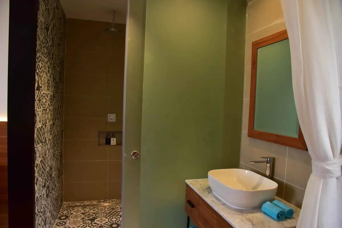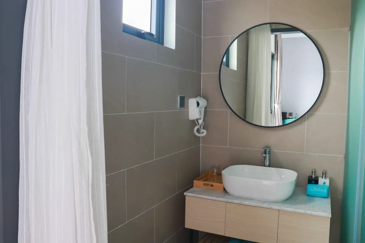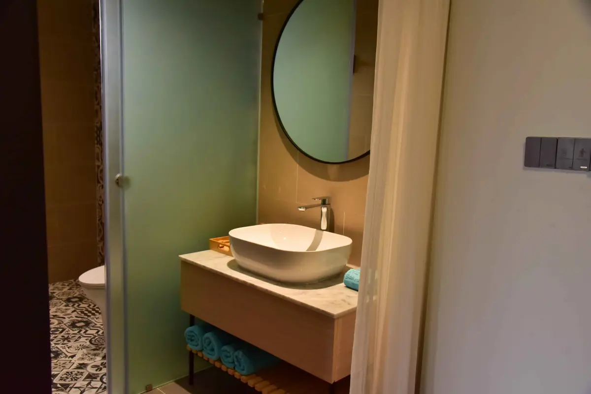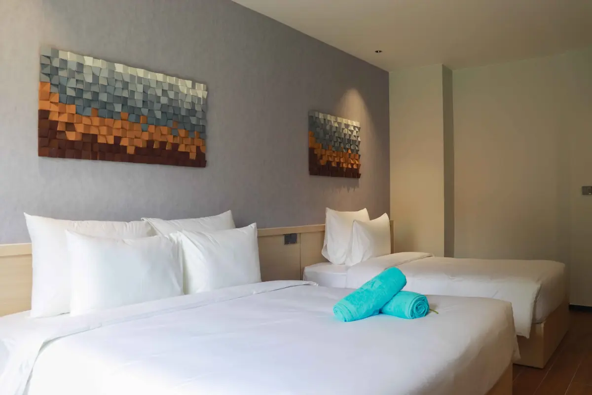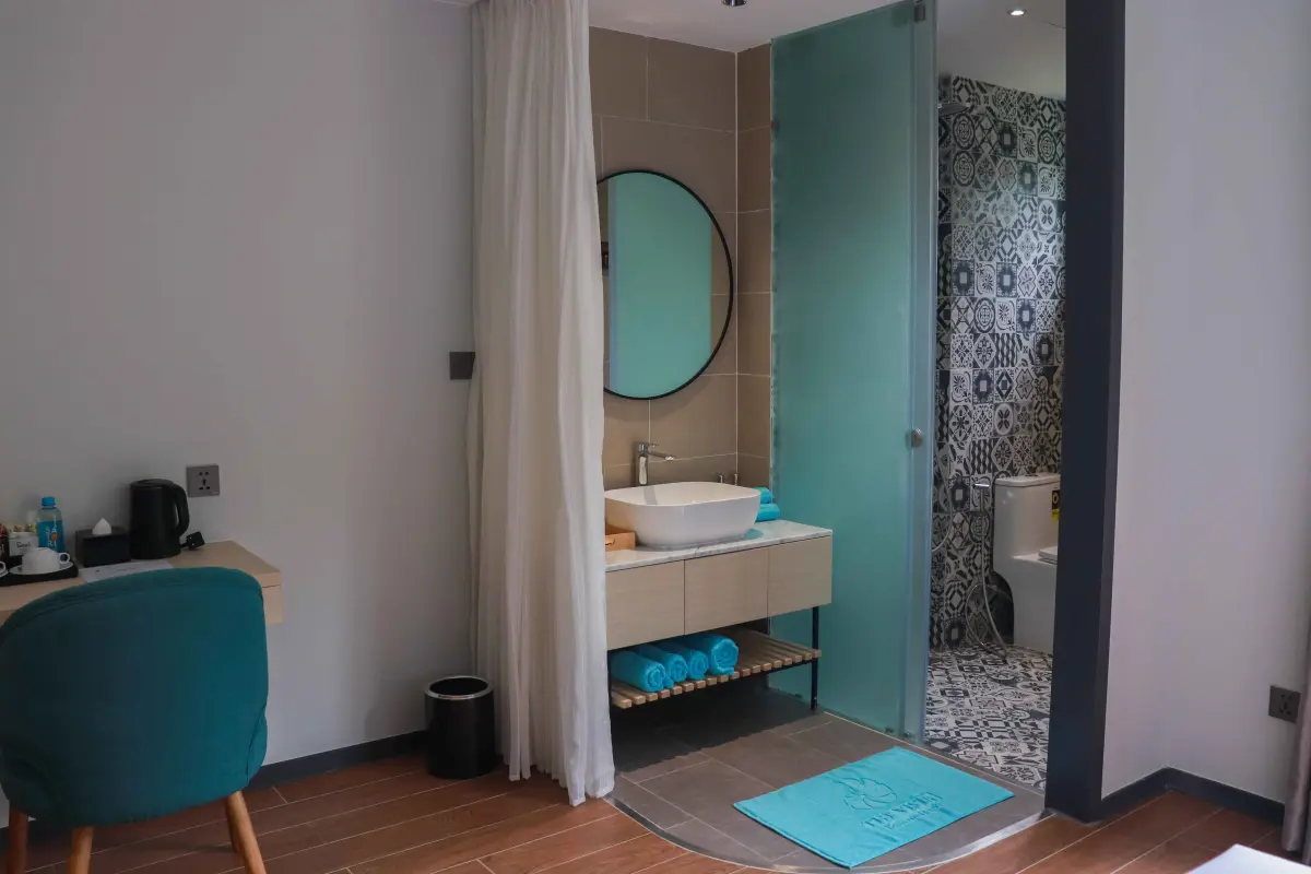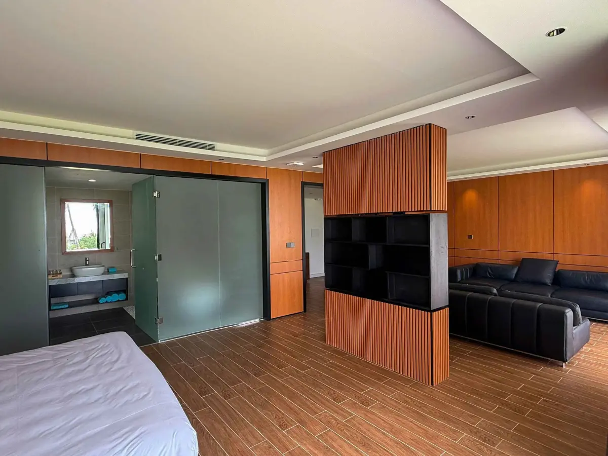 Khu resort được bao quanh bởi cây xanh và những lối đi rợp bóng dừa. Phòng nghỉ chủ yếu là bungalow hoặc villa riêng biệt, tường trắng mái ngói nâu, thiết kế kiểu hiện đại pha chút mộc mạc. Hầu hết phòng đều có ban công riêng hoặc khoảng sân nhỏ nhìn ra vườn hoặc biển, buổi sáng chỉ cần mở cửa là nghe tiếng sóng.